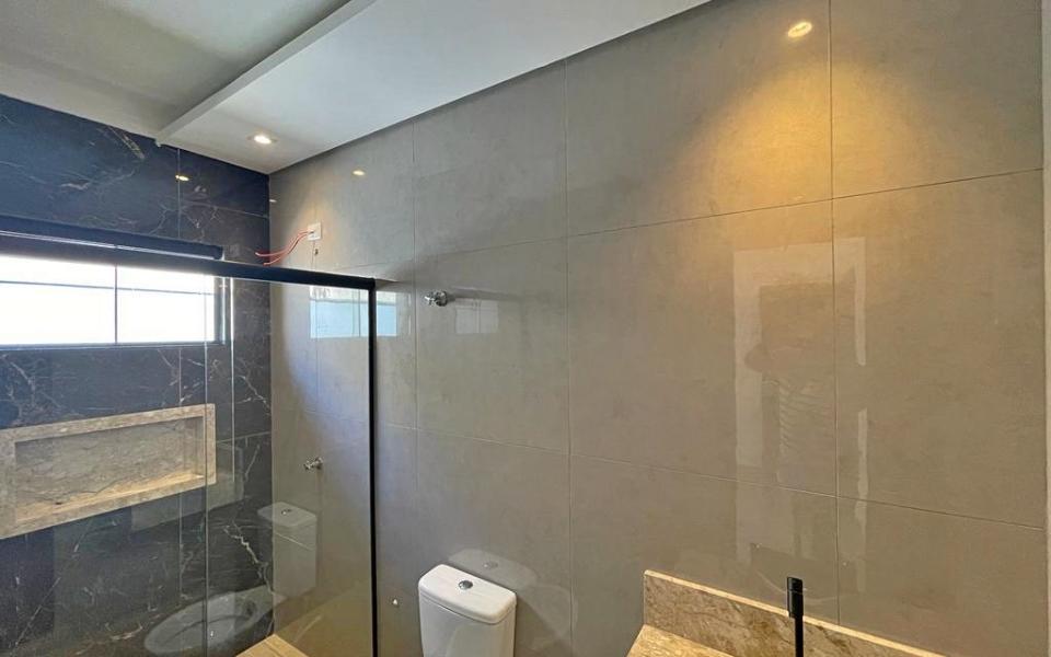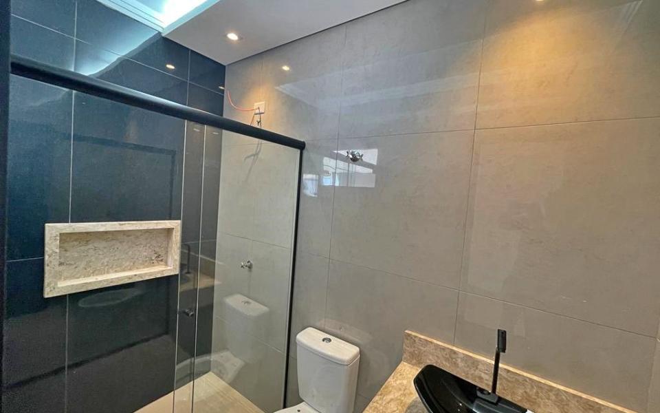 DUPLO, COZINHA AMERICANA, BANHEIRO SOCIAL E DAS SUÍTES COM BOX EM BLINDEX, REVESTIMENTO